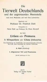 Alfred Detlef Fritz Kahl (18 February 1877 – November, 1946) was a German schoolteacher who took up microscopy in mid-life and became a leading authority on ciliated protozoa. In a burst of scientific productivity that lasted just nine years, he published 1800 pages of scholarly work, in which he described 17 new ciliate families, 57 genera, and about 700 previously unknown species. During his brief career as a protozoologist, he redescribed and illustrated nearly all the species of ciliates known in his time, and fit them into a taxonomic scheme that remains influential today.[1][2]