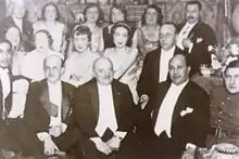 After the Russian Revolution and World War I many Persians from the Caucasus tried to escape from the Red Army to Iran. With his family ties in Azerbaijan and Iran, Ali Akbar Bahman was able to help refugees cross the border. On 26 August 1919 Ali Akbar was appointed Envoy Extraordinary and Minister Plenipotentiary of Persia to Bucharest, and then in 1921 ambassador to Belgium. From 1934 to 1935 he was Iran's Ambassador to Afghanistan, and in 1935 arranged the "Atabay Arbitration" (territorial exchanges between both countries in the Sistan-Zabulistan region).[6] In 1935 he also became Minister of Transport and with seven other members of the cabinet responsible for the 1935 commemoration stamp set.[7] Finally 1939-1943 he became ambassador to Egypt. There he arranged the marriage of Mohammad Reza Pahlavi (in those days Crown Prince of Iran) with Princess Fawzia, daughter of King Fouad I and sister of King Farouk of Egypt on 16 March 1939 in the Abdeen Palace at Cairo.[8][9]