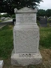 John Oliver Moqué later married Mary Ida Cole. He died on January 13, 1942. Although his name and birth year were listed on Alice Lee Moqué's headstone, he was buried with Mary Ida Cole in Fort Lincoln Cemetery in Brentwood, Maryland.[50]