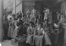 With the national Women's Social and Political Union, she participated in militant demonstrations in England. She was incarcerated for two months in Holloway Prison, London. With other suffragettes, she protested her treatment by participating in a hunger strike. Wright used uneaten food to create models of her fellow prisoners, using sugar cubes as bases, rather than let it go to waste.[13] She and over 60 other prisoners embroidered their signature on The Suffragette Handkerchief under the noses of the prison guards.[14] Wright also used smuggled plasteline to model a portrait bust of her fellow prisoner, Pankhurst.[15] Wright continued her suffrage activism after her return to the United States in 1914. She was Recording Secretary of the Woman's Suffrage Party of New York during the winning campaign.[16] Wright only returned to sculpture full-time after the passage of the Nineteenth Amendment.[2] In 1921, she helped to create the League of Women Voters of New York State.[7]