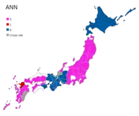 - ↑ Secondary affiliation; ANN programming moved to OAB in 1993. Currently, TV Oita is an affiliate of NNN/NNS, holding a secondary affiliation with FNN/FNS.