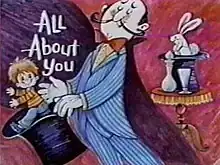 All About You was a series of short, videotaped programs that generally ran for 15 minutes or less that were hosted by future children's author Louise McNamara and written by Ada Litchfield. The show was geared towards youngsters aged 6–8 as a way to educate them on their bodies, especially where they came from, why they have what they have, what makes them work and why they work. The show's opening and closing credits always featured slides of cartoon drawings of kids enjoying themselves at a circus with appropriate circus music.