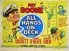 All Hands on Deck is a 1961 American DeLuxe musical film in CinemaScope directed by Norman Taurog and starring Pat Boone as a naval officer. It is based on the novel Warm Bodies by Donald R. Morris.