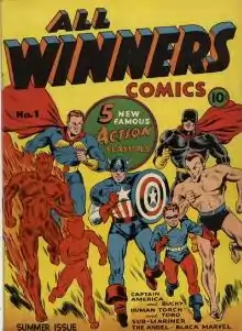 All Winners Comics was the name of two American comic book series of the 1940s, both published by Marvel Comics' predecessor, Timely Comics, during the period fans and historians call the Golden Age of Comic Books. A superhero anthology comic in both cases, they variously featured such star characters as Captain America, the original Human Torch, and the Sub-Mariner.[1] All Winners Comics was also the venue for two full-length stories of Marvel's first superhero team, the (hyphenated) All-Winners Squad.