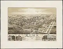 In 1853/54, General Ralph Ely purchased land along the Pine River and settled there with his wife and children.[3] He erected a mill and a settlement, "Elyton," sprang up in the area. In 1858, James Gargett platted a larger nearby area and dubbed it "Alma." Both Alma and Elyton increased in size, and were soon combined under the name of Alma. Alma had seventy residents by 1860, which increased to 404 in 1870, 467 in 1880, and 1,665 in 1890.