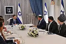 - ↑ הציונות הדתית בראשות בצלאל סמוטריץ ועוצמה יהודית בראשות איתמר בן גביר [Religious Zionism led by Bezalel Smotrich and Otzma Yehudit led by Itamar Ben Gvir] (in Hebrew). Government of Israel. 15 September 2022.