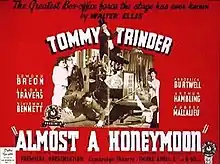 Almost a Honeymoon is a 1938 British comedy film directed by Norman Lee and starring Tommy Trinder, Linden Travers and Edmund Breon.[1] It was based on the 1930 play Almost a Honeymoon by Walter Ellis, previously filmed in 1930.[2] Its plot is about a young man who urgently needs to find a wife so that he can get a lucrative job in the colonial service, and sets out to persuade a woman to marry him.