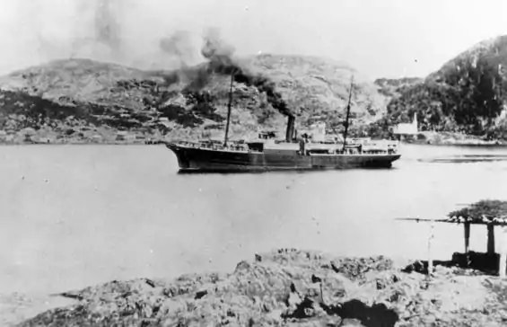 Alphabetically, the first on the list of vessels of the Reid Newfoundland Company was SS Argyle, built by A. & J. Inglis in Glasgow, Scotland in 1900. Launched on 19 December 1899, she was 155 feet (47 m) long with a gross register tonnage of 439. This vessel mainly visited communities in the Placentia Bay area. She was sold in 1941 to the S.S. Argyle Steamship Company of St. John's, Newfoundland. While bound from Baracoa to Miami with bananas, she was lost near Punta Gorda, Cuba on July 14, 1946.[1] Argyle took her name from the Scottish region of Argyll.