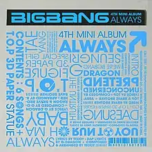 Always is the first Korean EP by South Korean boy band Big Bang, released under YG Entertainment on August 16, 2007.[1] Commercially, the album recorded pre-orders of 30,000 copies[2] and sold over 55,000 copies by the end of October 2007.[3]