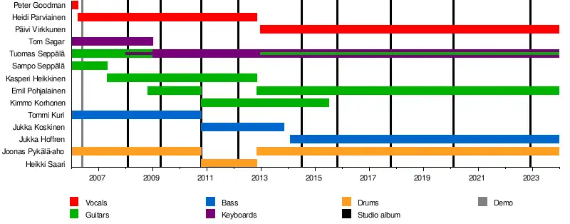 Past members | Sampo Seppälä Tom Sagar Tommi Kuri Heidi Parviainen Kasperi Heikkinen Heikki Saari Kimmo Korhonen |