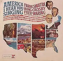 America, I Hear You Singing is an album recorded and released in 1964 by American singers Frank Sinatra and Bing Crosby, backed by Fred Waring's Pennsylvanians.[2] The album is a collection of patriotic songs, recorded as a tribute to the assassinated president John F. Kennedy. The artists would collaborate again for the album 12 Songs of Christmas, released later the same year.