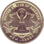 Four new coins will be released each year "celebrating innovations and innovators" from each of the fifty states, the District of Columbia, and the five U.S. territories (Puerto Rico, Guam, American Samoa, the U.S. Virgin Islands, and the Northern Mariana Islands).[5] All coins issued through this program will have the same obverse design showing the Statue of Liberty, and will contain the words: "In God We Trust" and "$1".[6][7]