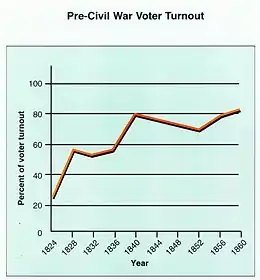 George Caleb Bingham (1811–1879) was an American artist whose paintings of elections in the 1850s are used by historians to explain the complexities and details of grassroots democracy. The paintings were on tour for years, as Americans paid money to see themselves in political action.[30]