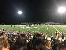 A field goal (FG), worth three points, is scored when the ball is place kicked or drop kicked through the uprights and over the crossbars of the defense's goalposts.[66][67][68] After a PAT attempt or successful field goal, the scoring team must kick the ball off to the other team.[69]