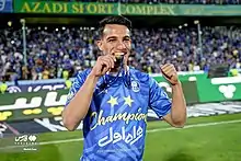 Hosseinzadeh with the 2021–22 Persian Gulf Pro League championship medal