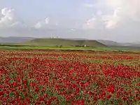 There are two tells in the area; one inside Amuda itself, and the other on the Turkish side of the border, three kilometers north of the city.[2] In older and some modern literature, the tell inside Amuda is named Tell Amuda, but for locals its name is Tell Shermola, while the tell on the Turkish side is the real Tell Amuda, which had its name changed by the Turkish authorities to Tell Kemaliya.[3]