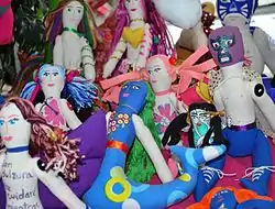 The tradition of making dolls in Mexico stretches back to Teotihuacan, with finds of small clay dolls with movable limbs.[1] While toys have been made since the pre Hispanic period, most archeological samples are in poor condition because of the natural materials they were made with.[2] The making of handcrafted dolls continues in various communities, especially indigenous ones in Chiapas, Jalisco, Michoacán, Oaxaca and Querétaro using various materials, with those made from cloth and ceramic dominating. The making of rag dolls in Mexico reached its peak in the 19th century.[1]