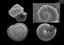 - ↑ Geiger D.L. (2012) Monograph of the little slit shells. Volume 1. Introduction, Scissurellidae. pp. 1-728. Volume 2. Anatomidae, Larocheidae, Depressizonidae, Sutilizonidae, Temnocinclidae. pp. 729-1291. Santa Barbara Museum of Natural History Monographs Number 7. (30 October 2012). World Register of Marine Species, Retrieved 2013-02-16.