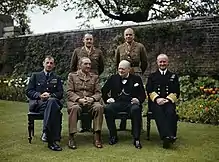 In October 1943, Cunningham became First Sea Lord and Chief of the Naval Staff, after the death of Sir Dudley Pound. This promotion meant that he had to relinquish his coveted post of Commander-in-Chief, Mediterranean, recommending Admiral John H. D. Cunningham as his successor.[58] In the position of First Sea Lord, and as a member of the Chiefs of Staff committee, Cunningham was responsible for the overall strategic direction of the navy for the remainder of the war. He attended the major conferences at Cairo, Tehran, Yalta and Potsdam,[56] at which the Allies discussed future strategy, including the invasion of Normandy and the deployment of a British fleet to the Pacific Ocean.[56]