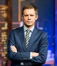 Andrius Balys Tapinas (born 6 April 1977) is a Lithuanian journalist. Tapinas is the anchor of a long-running popular Lithuanian TV program The Money Generation. He has also launched his own online TV channel on YouTube called "Freedom TV", which has proven to be a great success. Along with the "Freedom Group", Andrius has completed multiple fundraising campaigns during the COVID-19 pandemic, as well as the 2021 Lithuanian migration crisis. He hosted the "Freedom Chain" from Vilnius to Belarus border during 2020 Belarusian protests.