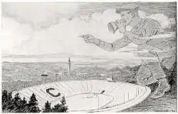 Smith's memorial service was held on January 16 at the gates of California Memorial Stadium, and in accordance with his wishes, his ashes were scattered over the stadium field.[27] In 1927, the Andy Smith Bench on the sideline was dedicated in his honor. Built 101 years ago in 1923, the stadium is still known as "The House that Andy built" because the Wonder Teams' season tickets completely paid for it.[28] Smith was inducted into the College Football Hall of Fame in 1951.[2]