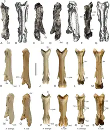- ↑ Brodkorb, P. (1963). "Catalogue of Fossil Birds - Part 1 (Archaeopterygiformes through Ardeiformes)". Bulletin of the Florida State Museum. 7 (4): 256.