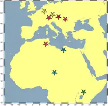 - ↑ Louchart, A.; Haile-Selassie, Y.; Vignaud, P.; Likius, A.; Brunet, M. (2008). "Fossil birds from the Late Miocene of Chad and Ethiopia and zoogeographical implications". Oryctos. 7pages=147–167.
