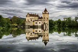 Anif Palace (German: Schloss Anif), also known as the Water Palace Anif, is located beside an artificial pond in Anif on the southern edge of Salzburg, Austria.[1] The palace was once the seat of the bishops of Chiemsee, and then later was used as a court until the nineteenth century.[1] It was remodeled between 1838 and 1848 in the neo-Gothic style. Anif is most famous for its use in several movies, including The Sound of Music, The Great Race, and Frederick Forsyth's The Odessa File.[1]