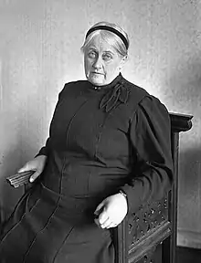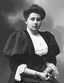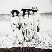 Vyrubova became one of Rasputin's adherents and on the order of the Tsarina, she went on a trip to his home village of Pokrovskoye to investigate the rumours about Rasputin.[7] She visited some monasteries in the area.[5] Vyrubova's importance grew at the court, as the friendship with Milica of Montenegro and her sister Anastasia deteriorated.[8] "With the death of Father John of Kronstadt, "Father" Grigori became, in her eyes, the only mediator with God, the only man with effective prayers. He was called to replace Father John."[9] In 1909 she received to hieromonk Iliodor in her house for a meeting with the Tsar.[10] Around Easter 1912 Vyrubova stashed Rasputin on a train to Yalta, so he could visit the Imperial family in the Livadia Palace on the Crimea.[11]