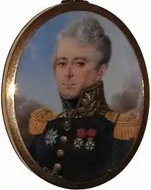 Historian Charles Mullié credits Trelliard with serving under Jean Victor Marie Moreau in the blockade of Mainz.[1] This unsuccessful operation lasted from 20 September to 13 October 1795. However, another source places the 11th Chasseurs in François Séverin Marceau-Desgraviers' Division, which was involved in the futile blockade of Ehrenbreitstein Fortress from 15 September to 17 October.[2] He seized some redoubts and 2,000 prisoners during the Battle of Neuwied on 18 April 1797.[1] He was appointed general of brigade on 10 September 1799.[3] Afterward he led the cavalry in the forces occupying the Batavian Republic. On 11 December 1803 he became a member of the Légion d'Honneur and a commander of the Légion on 14 June 1804.[1]