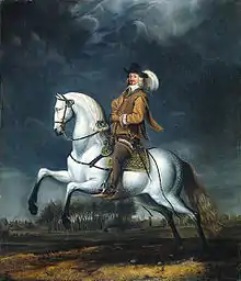 Johan Wolfert remarried in The Hague on 11 February 1638[19][20][22][23] to Countess Louise Christine of Solms-Braunfels (Braunfels, 17 October 1606[23] – Vianen, 24 March 1669[19][23]). Louise Christine was a younger sister of Amalia of Solms-Braunfels, wife of Prince Frederick Henry of Orange.[23] Eight children were born from Johan Wolfert's second marriage.[24] Johan Wolfert died on 3 September 1655 at Petersheim Castle near Maastricht, a property of his relative Ferdinand de Merode. He was interred in the family tomb in the Great Church in Vianen on 25 October.[10]