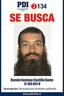 ![]() Wanted poster used by the Investigations Police of Chile, April 2013. | |