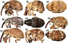 Anthonomini species: 25 Achia serjaniae 26 and 27 Achia rhombifera 28 Anthonomus aeneolus 29 Anthonomus abdominalis 30 Anthonomus eugenii 31 Anthonomus grandis 32 and 33 Anthonomus flavirostris. | |