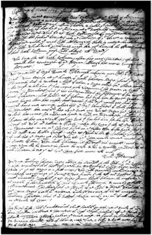 In 1657, Johnson's neighbor, Edmund Scarborough, allegedly forged a letter in which Johnson acknowledged a debt; whether this debt was real or not is unknown. Johnson did not contest the case. Johnson was illiterate and could not have written the letter; nevertheless, the court awarded Scarborough 100 acres (40 ha) of Johnson's land to pay off his alleged "debt".[10]