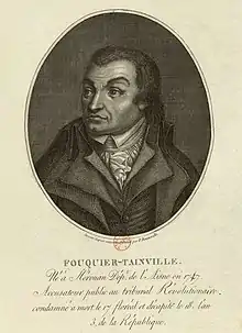 Antoine Quentin Fouquier de Tinville (French pronunciation: [ɑ̃twan kɑ̃tɛ̃ fukje tɛ̃vil], 10 June 1746 – 7 May 1795), also called Fouquier-Tinville and nicknamed posthumously the Provider of the Guillotine[1] was a French lawyer and accusateur public of the Revolutionary Tribunal during the French Revolution and Reign of Terror.