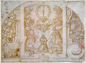 Project for a retable with an allegory of the venarable third order, drawing from 1663, now in the Museum of Fine Arts of Córdoba