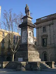 In Barcelona there was formerly a monument dedicated to him and the companies he founded. Located close to the Compañía Transatlántica Española head office, the monument A López y López was erected in 1884 and was designed by architect Josep Oriol Mestres and sculptor Venanci Vallmitjana. On its sides it has reliefs by Lluís Puiggener, Joan Roig i Solé, Rossend Nobas and Francesc Pagès. The monument was destroyed in 1936, but was restored in 1944 by Frederic Marès.[9] On March 4, 2018 the monument was finally removed after a campaign denouncing the involvement of Antonio López in the slave trade.[10]