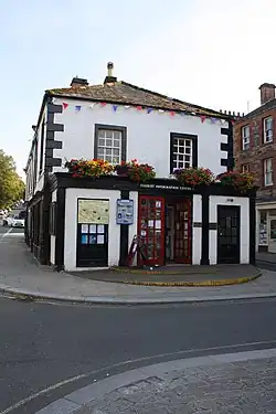 St Lawrence's Parish Church is recorded in the National Heritage List for England as a designated Grade I listed building.[4] Appleby Castle was founded by Ranulf le Meschin in the early 12th century. The Borough followed by royal charter in 1179 and the Moot Hall was built about 1596.[5] Surviving timbers in the roof had been felled between 1571 and 1596.[6] In the Second English Civil War Appleby was placed under a siege, in which the Regicide Major General Thomas Harrison was wounded.[7]