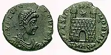 At the end of the 4th century, Ausonius enumerated Aquileia as the ninth among the great cities of the world, placing Rome, Constantinople, Carthage, Antioch, Alexandria, Trier, Mediolanum, and Capua before it. However, such prominence made it a target and Alaric and the Visigoths besieged it in 401, during which time some of its residents fled to the nearby lagoons. Alaric again attacked it in 408. Attila attacked the city in 452. During this invasion, on July 18, Attila and his Huns so utterly destroyed the city that it was afterwards hard to recognize its original site. The fall of Aquileia was the first of Attila's incursions into Roman territory; followed by cities like Mediolanum and Ticinum.[14] The Roman inhabitants, together with those of smaller towns in the neighbourhood, fled en masse to the lagoons, where they laid the foundations of the cities of Venice and nearby Grado.