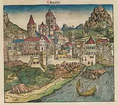 Meanwhile, in 169 BCE, 1,500 more Latin colonists with their families, led by the triumvirate of Titus Annius Lucius, Publius Decius Subulo, and Marcus Cornelius Cethegus, settled in the town as a reinforcement to the garrison.[11] The discovery of the gold fields near the modern Klagenfurt in 130 BCE[12] brought the growing colony into further notice, and it soon became a place of importance, not only owing to its strategic military position, but as a centre of commerce, especially in agricultural products and viticulture. It also had, in later times at least, considerable brickfields.