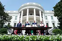 - ↑ There is a separate short undated statement headed "The Abraham Accords Declaration": signed by all 4 parties while the agreement between the UAE and Israel contains the following statement "Reaffirming the 'Joint Statement of the United States, the State of Israel, and the United Arab Emirates' (the 'Abraham Accords'), dated 13 August 2020".