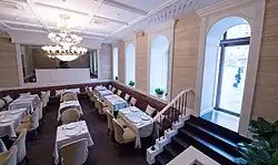 Soon after its opening, the restaurant quickly gained a reputation for its quality and became popular among the Soviet elite. Due to high prices and strict face control, Aragvi was largely considered inaccessible for the average citizen.[2] After the fall of the Soviet Union, it became increasingly associated with organized crime. The restaurant was closed for renovations in the early 2000s, but its reopening was delayed due to changes in management as well as due to the discovery of archeological remains from the 17th century.[3] The Government of Moscow has assumed responsibility over the building's future. In 2016, the restaurant was reopened by Armenian businessmen Samvel Karpetyan and Gor Nakhapetyan after a $20 million renovation.[4] The new menu was expanded to include non-Georgian Caucasian dishes.[5]