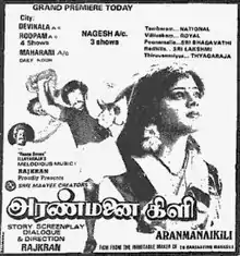 Aranmanai Kili (transl. Palatial parrot) is a 1993 Indian Tamil-language romantic drama film written, produced and directed by Rajkiran in his directorial debut. He also stars alongside Ahana and Gayathri. The film was released on 16 April 1993. It was remade in Telugu as Maa Voori Maaraju (1994),[1] and in Kannada as Neelakanta (2006).[2]