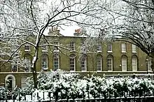 Arbour Square was laid out as a garden enclosure in 1819. By 1830, contemporary maps show buildings on all sides of the square and many of the surrounding roads.[1] The south and west sides of the square are still made up of the original three and four storey Georgian townhouses which are Grade II listed. The east side was demolished and replaced by the Raine's School building (also Grade II listed) in 1913, while the terrace on the north side was replaced by a block of flats in 1937.[2] The Raine's School building now houses part of Tower Hamlets College. The school building was entirely refurbished in 1994 by Sprunt Architects, featuring a new open learning centre within the listed heart of the building.
