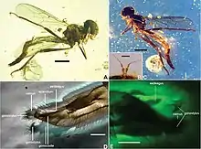 - ↑ Grimaldi, David A. (2016-09-28). "Diverse Orthorrhaphan Flies (Insecta: Diptera: Brachycera) in Amber From the Cretaceous of Myanmar: Brachycera in Cretaceous Amber, Part VII". Bulletin of the American Museum of Natural History. 408: 1–131. doi:10.1206/0003-0090-408.1.1. ISSN 0003-0090. S2CID 89043544.