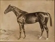 Ard Patrick was an exceptionally big brown horse, reportedly standing 17 hands high,[1] who was bred by his owner John Gubbins at his Knockany Stud near Bruree, County Limerick, Ireland, (at that time part of the United Kingdom of Great Britain and Ireland) and named after the nearby village of Ardpatrick (Ard Pádraig). He was sired by St Florian, a well-bred horse by St Simon, who had an unremarkable record both as a racehorse and as a sire. He was a member of Thoroughbred Family Number 20, which at that time had a poor record of producing breeding stallions.[2] His dam, Morganette, by Springfield was a roarer and did not advance beyond selling plates in her racing career, but proved an excellent broodmare. Before giving birth to Ard Patrick she had produced Galtee More who won the Triple Crown in 1897, and also Blairfinde a winner of the Irish Derby.[3][4]