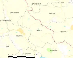 Ardizas is located in the canton of Gimone-Arrats and in the arrondissement of Condom.
