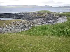 Rocky shoreline at Ardnave Point. In the background is the coast of north Islay east of Loch Gruinart.
