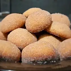 Areias de Cascais (lit. 'areias from Cascais') or simply areias.[1] The traditional recipe calls for dough made of flour mixed with lard (or butter), rolled into balls the size of walnuts, that is baked without the use of a leavening agent.[2] The biscuits are then coated in coarse-grain sugar. Some modern recipes optionally use lemon zest or vanilla,[3] or incorporate ground almonds and glacé cherries.[4] Because of the simplicity of recipe, variations exists throughout Portugal.[5][6]