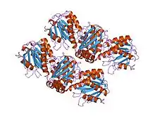 - ↑ Elkins JM, Kershaw NJ, Schofield CJ (January 2005). "X-ray crystal structure of ornithine acetyltransferase from the clavulanic acid biosynthesis gene cluster". Biochem. J. 385 (Pt 2): 565–73. doi:10.1042/BJ20040814. PMC 1134730. PMID 15352873.